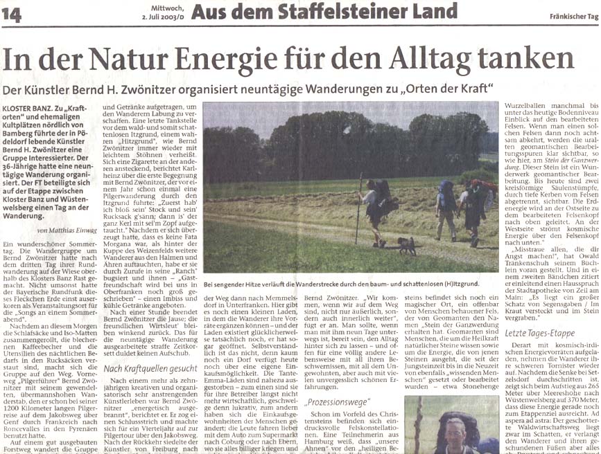 Bernd H. Zwönitzer Lohntalstraße 9, D - 96123 Litzendorf Telefon: 09505 / 80 50 388 email: info@pilgerwanderung.de